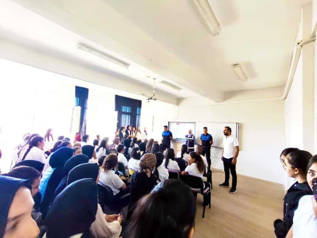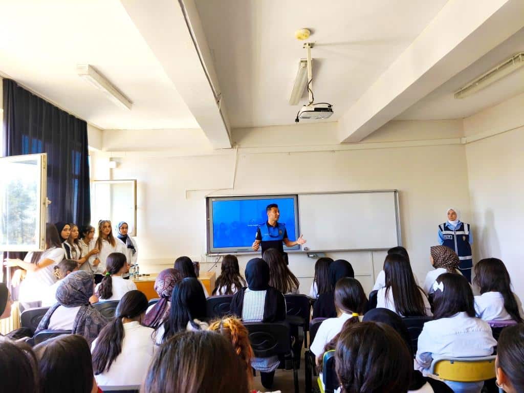 Emniyet mensubu polisler tarafından kişisel güvenlik, madde bağımlılığı konularında 10 ve 11. Sınıflara seminer verildi.